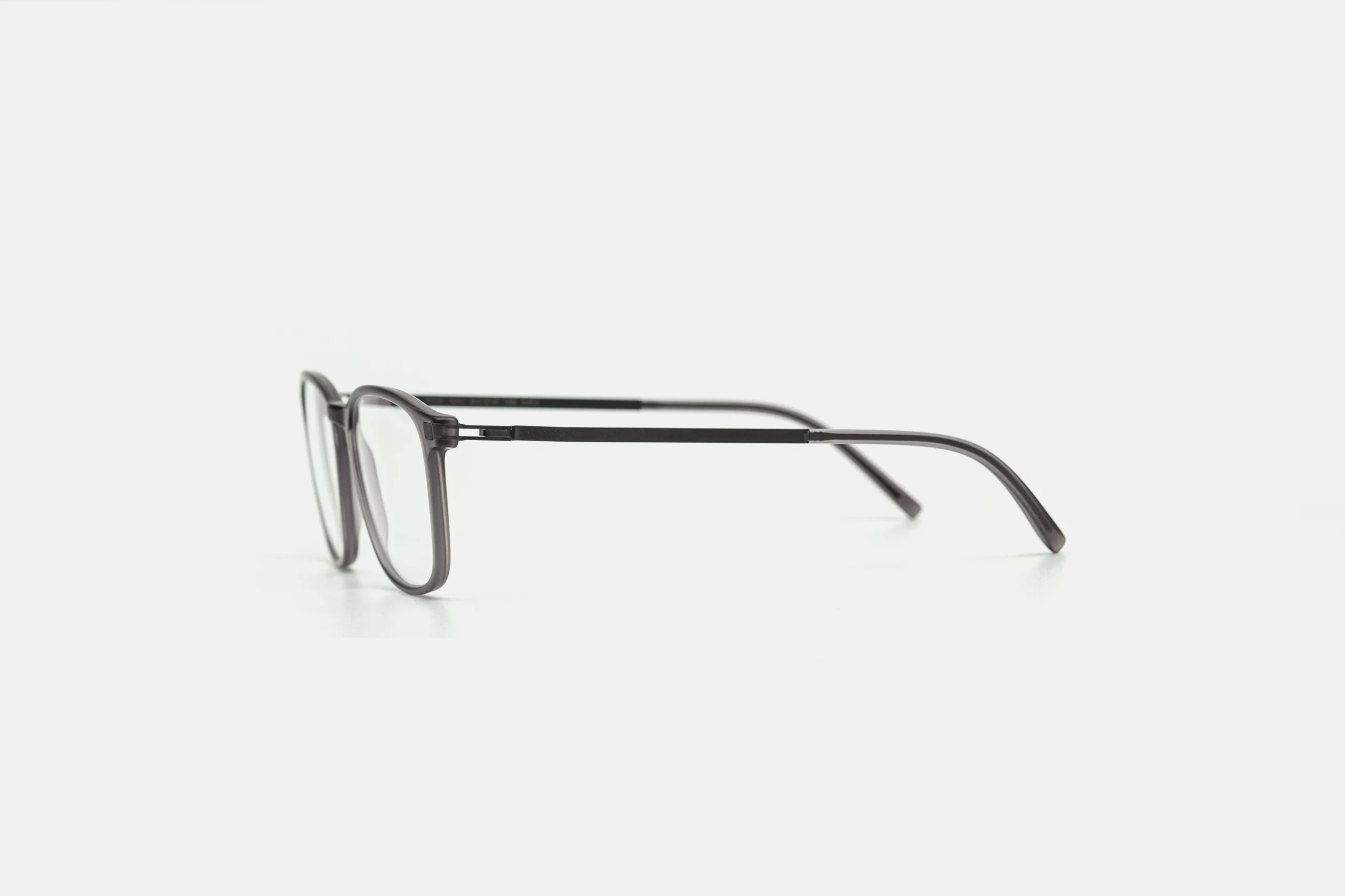 Напівпрозорий сірий ацетат додає глибини кольору та працює як делікатний графічний акцент. Завушники виконані з надлегкої нержавної сталі — тонкі, пружні, майже невагомі, вони забезпечують комфорт навіть при тривалому носінні.
